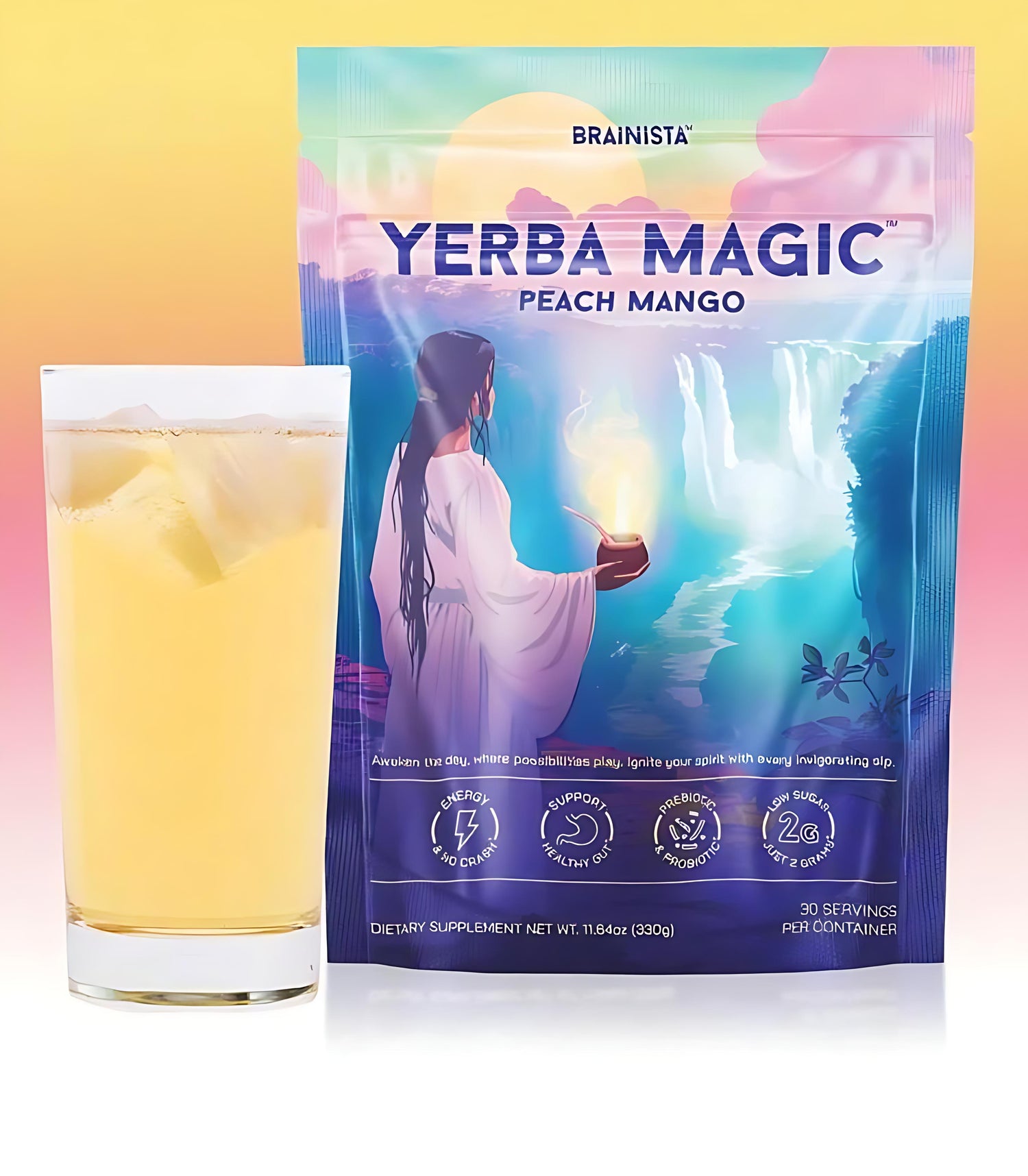 Each serving contains 100mg of natural caffeine from Yerba Mate, providing a steady energy boost without the jitters or crashes of coffee.